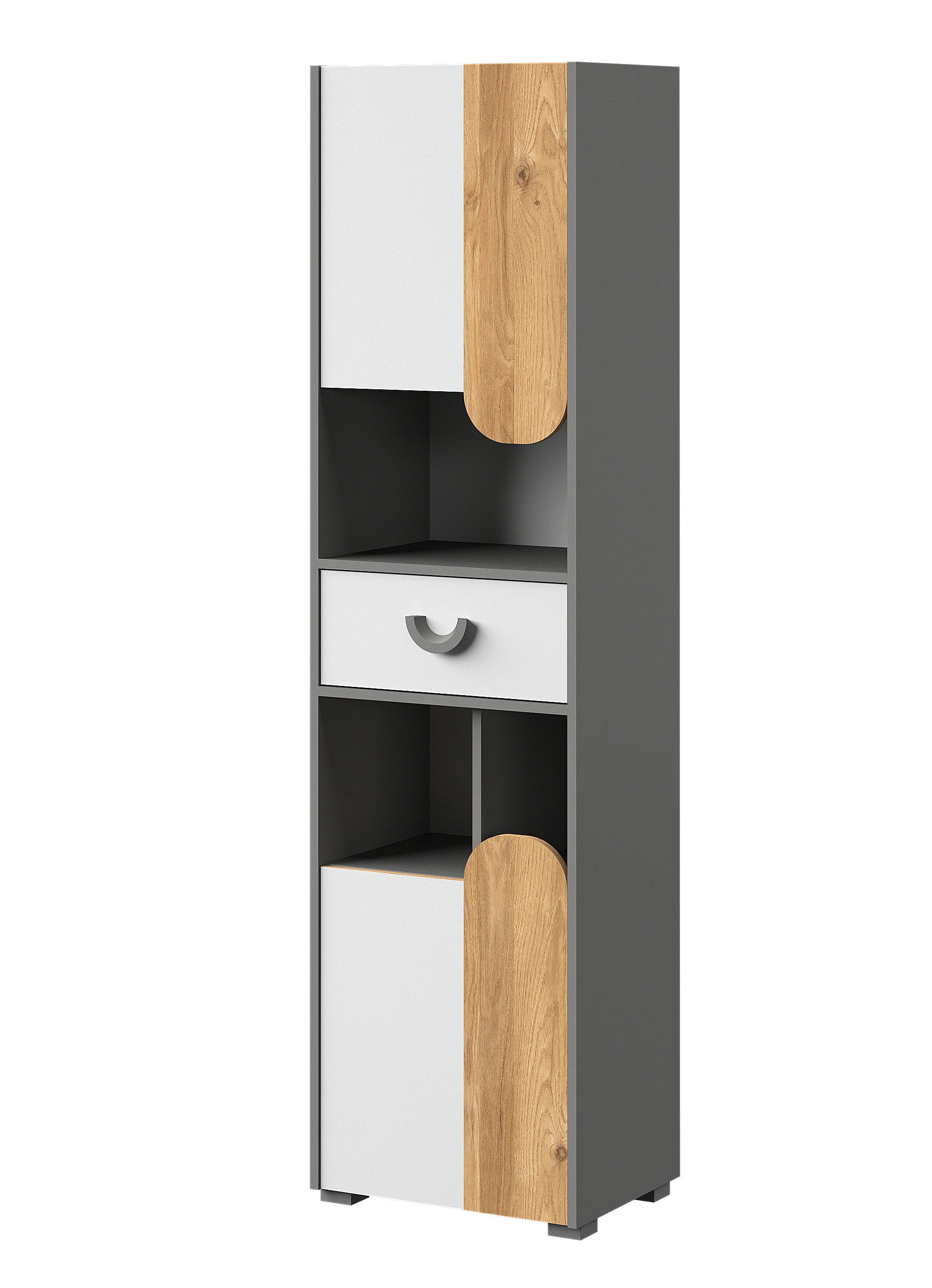 Elegantní a funkční skříň do pokoje pro mládež z kolekce Carini je dokonalým řešením pro váš interiér. Obdivujte moderní styl a vysokou kvalitu zpracování! Díky dvěma dvířkům, zásuvce a pěti policím získáte dostatek prostoru pro uložení oblečení, knih a dalších drobností. Matná povrchová úprava v odstínech dub nash, bílá brilant a grafit skvěle zapadne do moderního zařízení místnosti. Nyní objevte funkčnost a design v jednom!
