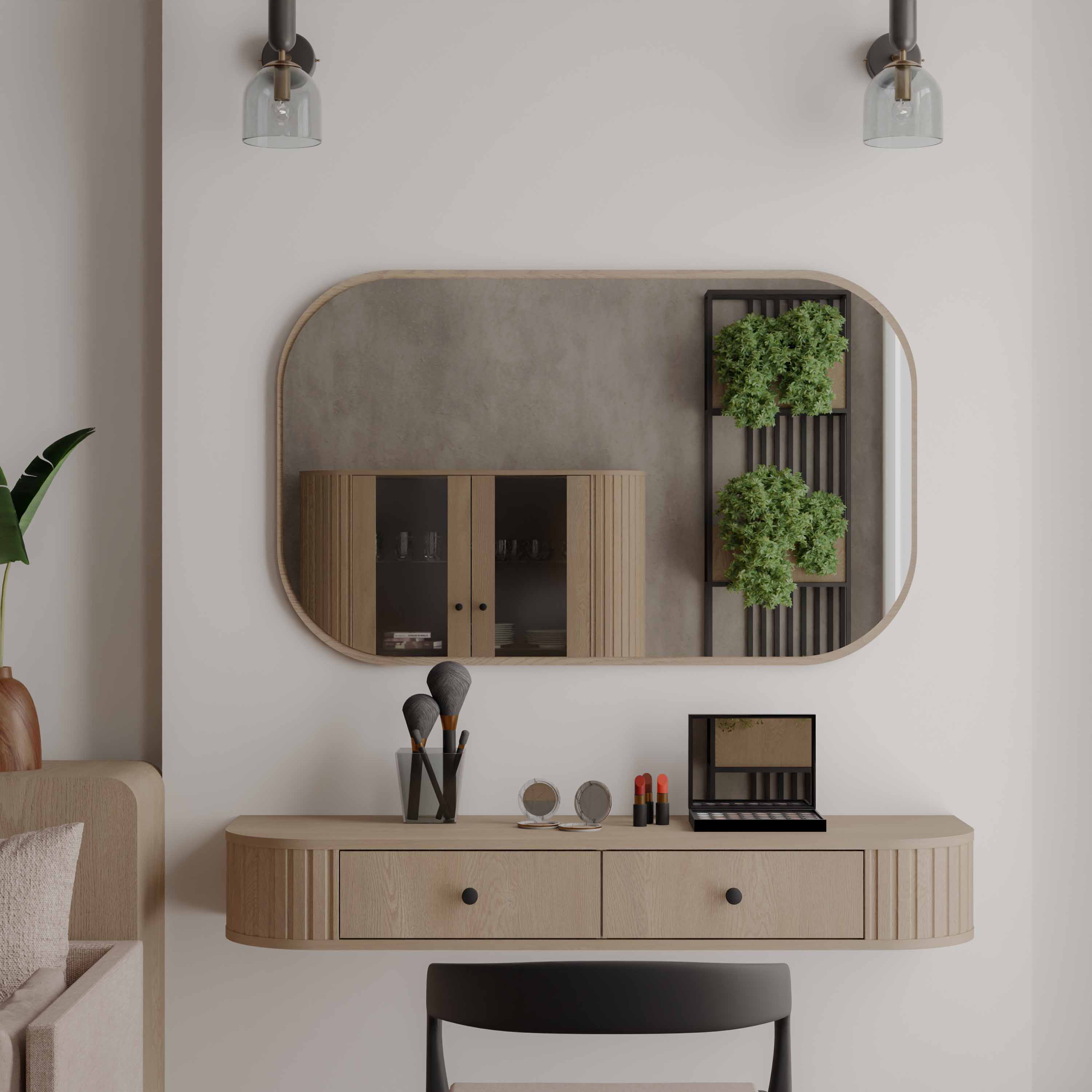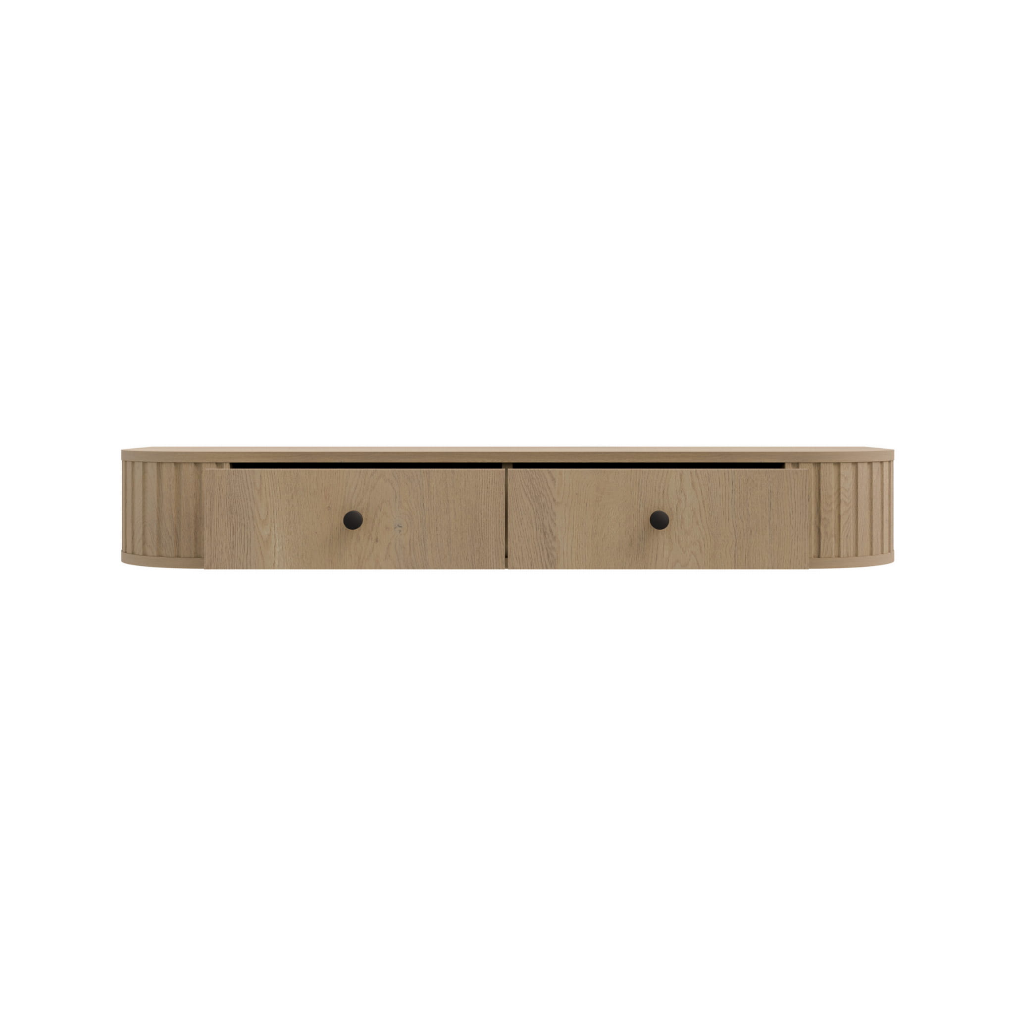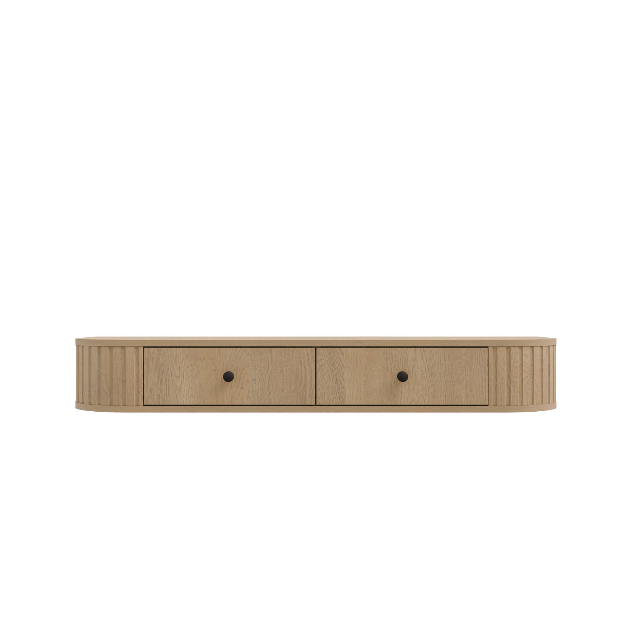 Toaletní stolek z kolekce Flana v dekoru dub Cremona se vyznačuje teplým, přírodním vzhledem a černými detaily, které dodávají moderní nádech. Dvě praktické zásuvky umožňují snadnou organizaci kosmetiky a drobných doplňků, zatímco drážkované boky podtrhují stylový charakter nábytku. Díky lehké, závěsné konstrukci se stolek skvěle hodí do ložnice i šatny, aniž by opticky zatěžoval prostor.
