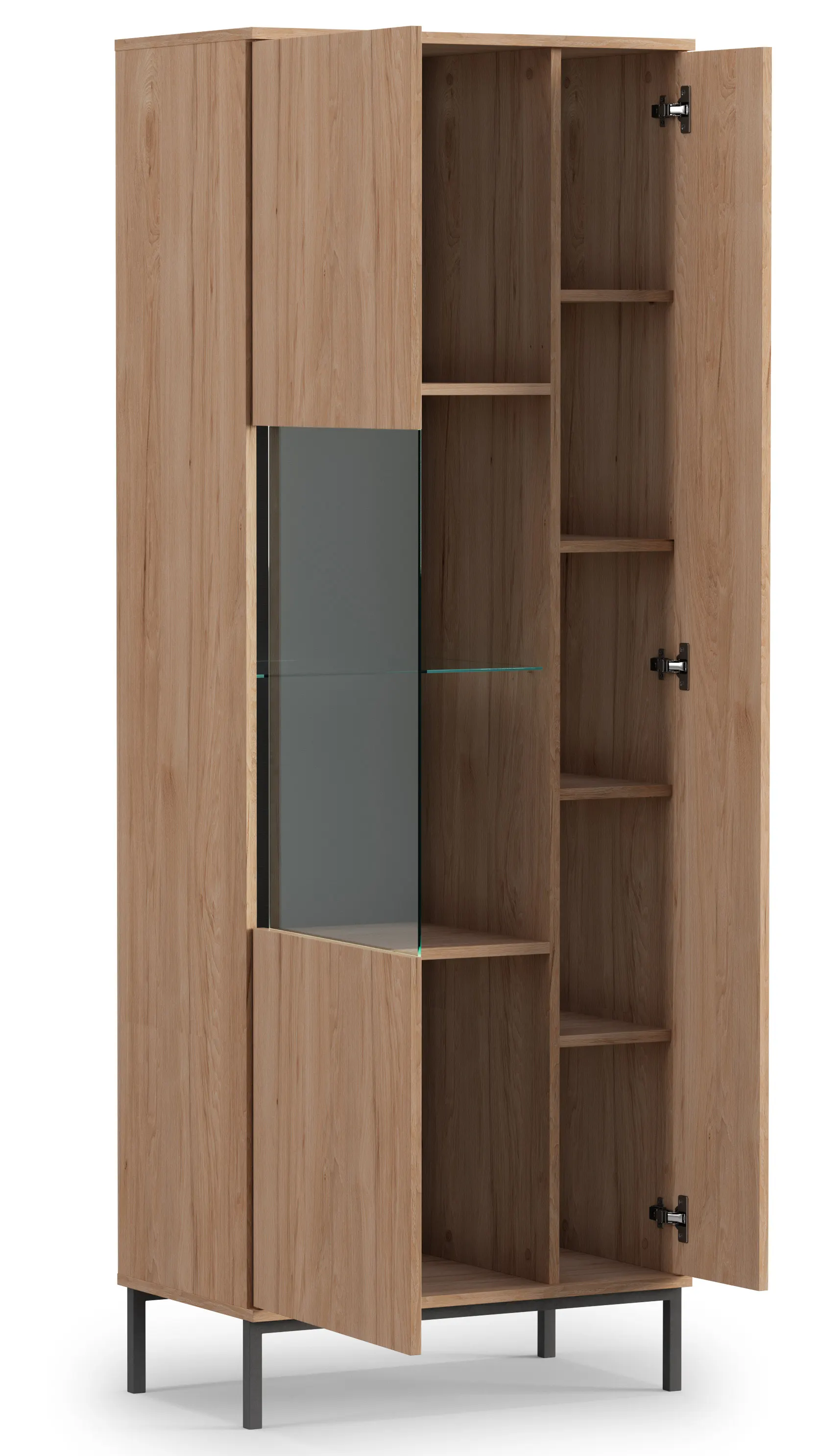 Vitrína Querty je nejen praktickým kusem nábytku, ale také výstavním kouskem vašeho obývacího pokoje, který mu dodá charakter a eleganci. Její funkčnost spočívá v efektivním ukládání a vystavování ozdob a osobních předmětů. Díky svému modernímu designu a rafinovaným detailům se vitrína Querty dokonale hodí k různým stylům interiéru. Umožní vám vystavit vaše oblíbené sbírky nebo rodinné památky, stane se ústředním bodem vašeho prostoru a obohatí estetiku i funkčnost vašeho obývacího pokoje.