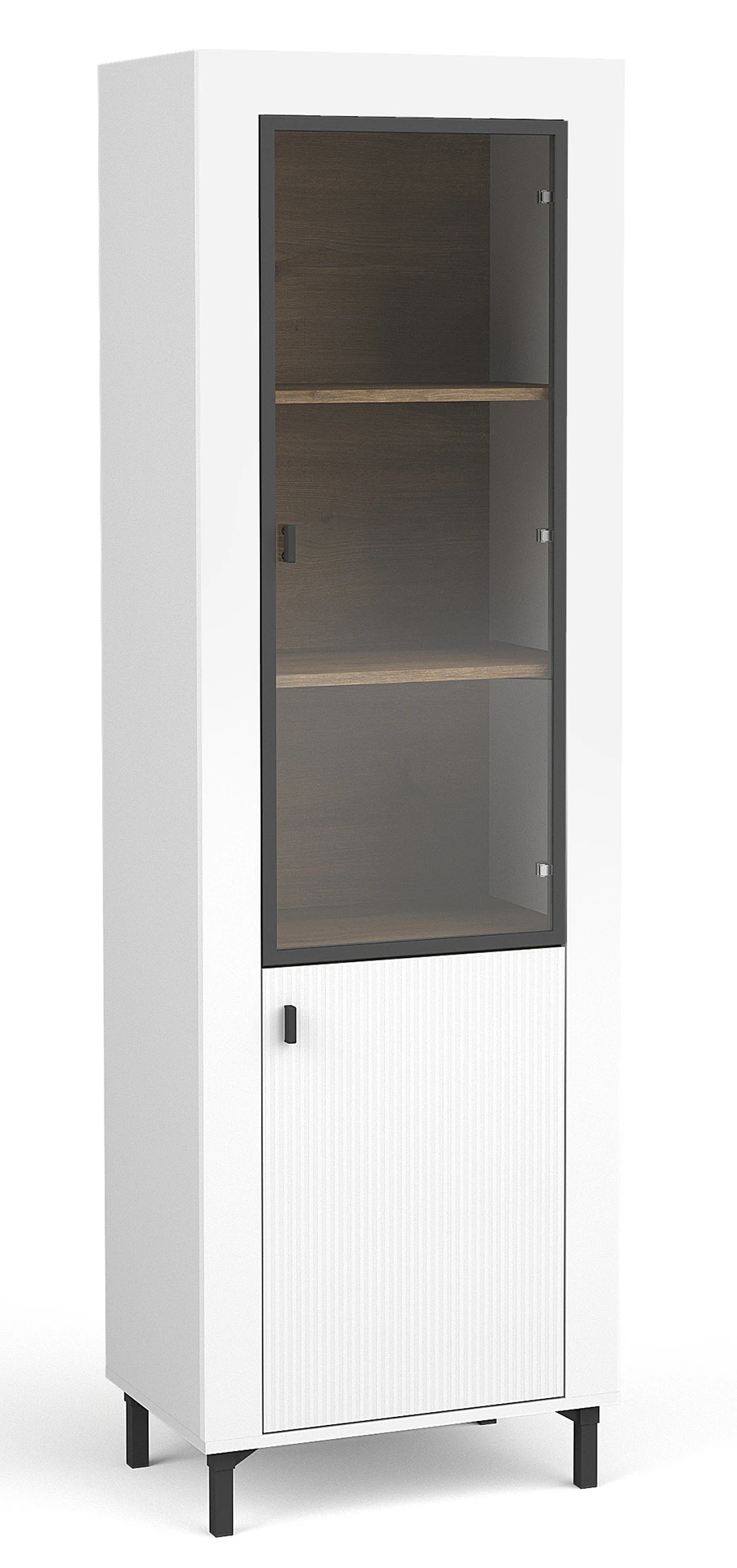 Stylová vitrína Mossa MO3 do obývacího pokoje v bílé barvě a dubu whisky je dokonalým řešením pro milovníky moderního designu. Poskytne nejen elegantní úložný prostor, ale bude také skvělou dekorací interiéru. Tato vitrína potěší každého, kdo hledá funkčnost a styl. Navíc nevyžaduje mnoho místa, takže se skvěle hodí i do malých místností. Objednejte si ji nyní a doplňte svůj prostor o kousek luxusu!