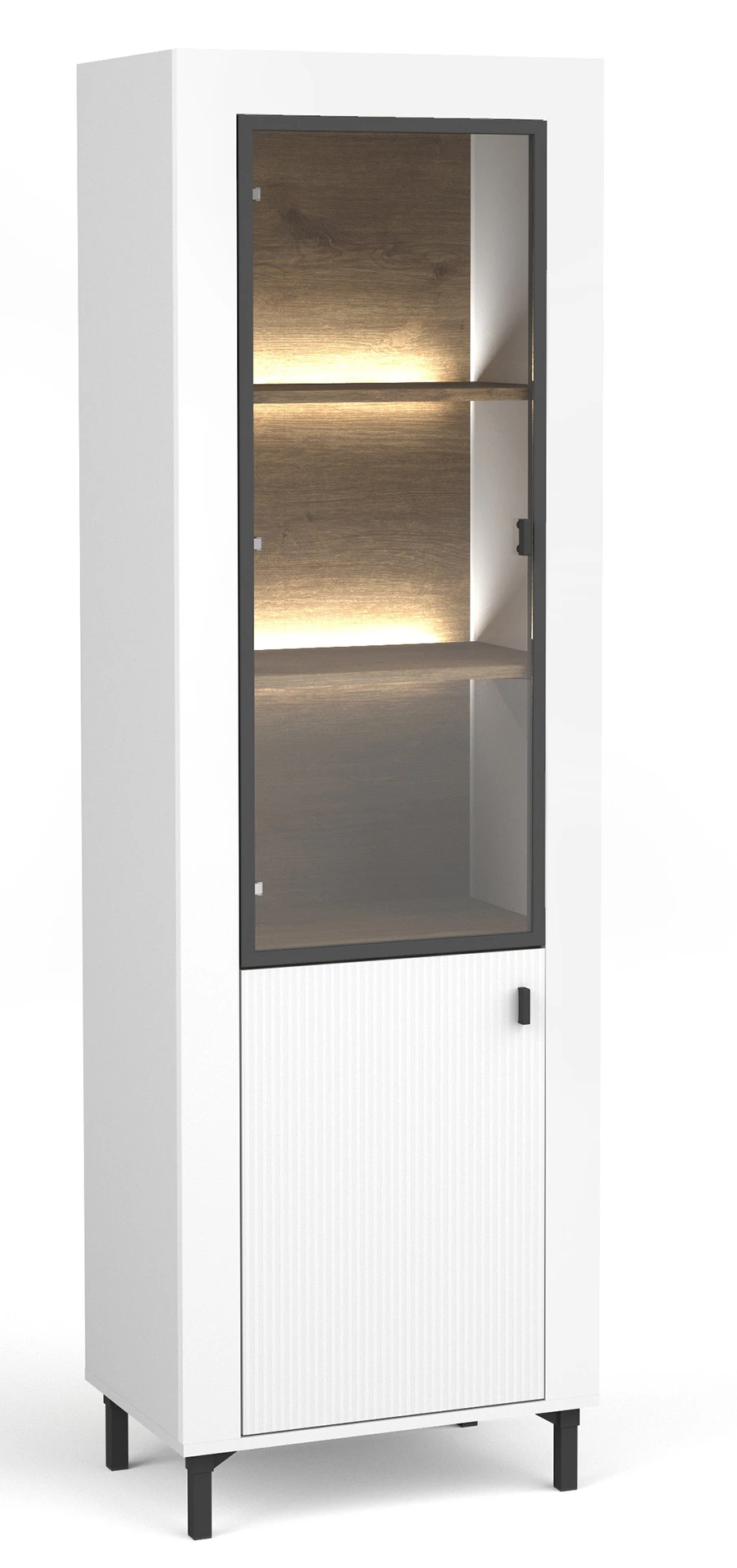 Vitrína do obývacího pokoje s LED Mossa MO3 Bílý/dub whisky