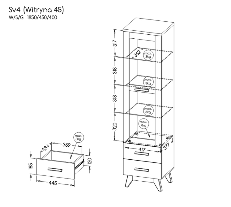 Sven SV4 display cabinet - Dimensions/Specifications: