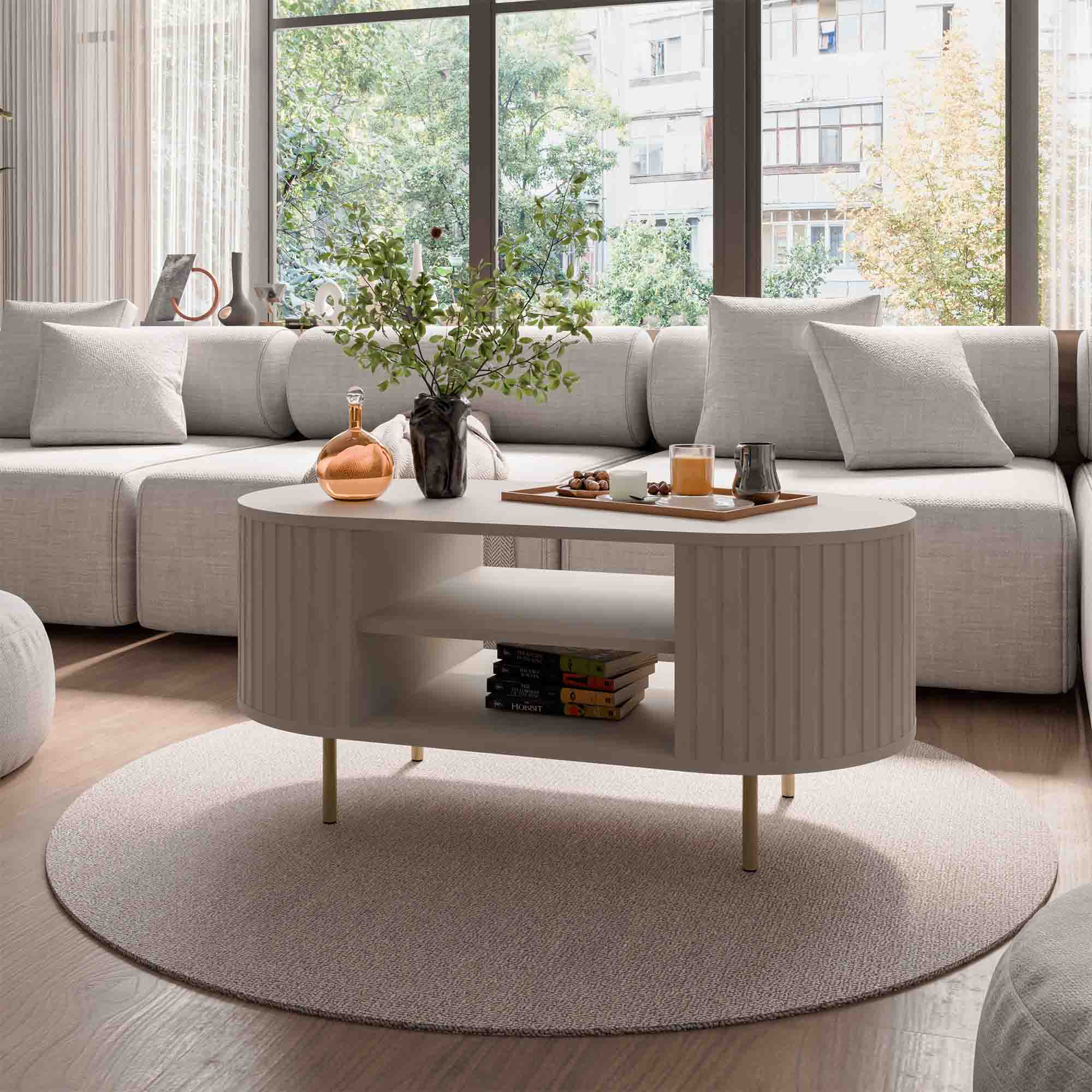 Konferenční stolek s drážkovanými boky do obývacího pokoje Flana 200 Béžový