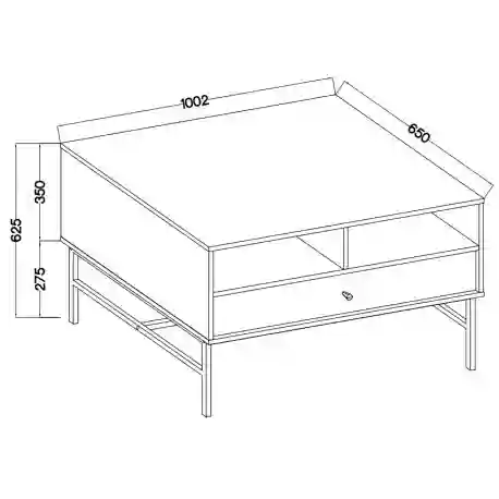 Konferenční stolek spojuje estetiku s funkčností a slouží k organizaci prostoru kolem sezení. Díky prostorné zásuvce a otevřeným policím umožňuje uschovat potřebné předměty na dosah ruky a zároveň udržet pořádek. Je to ideální volba pro ty, kteří ocení moderní styl a pohodlí v každodenním životě.