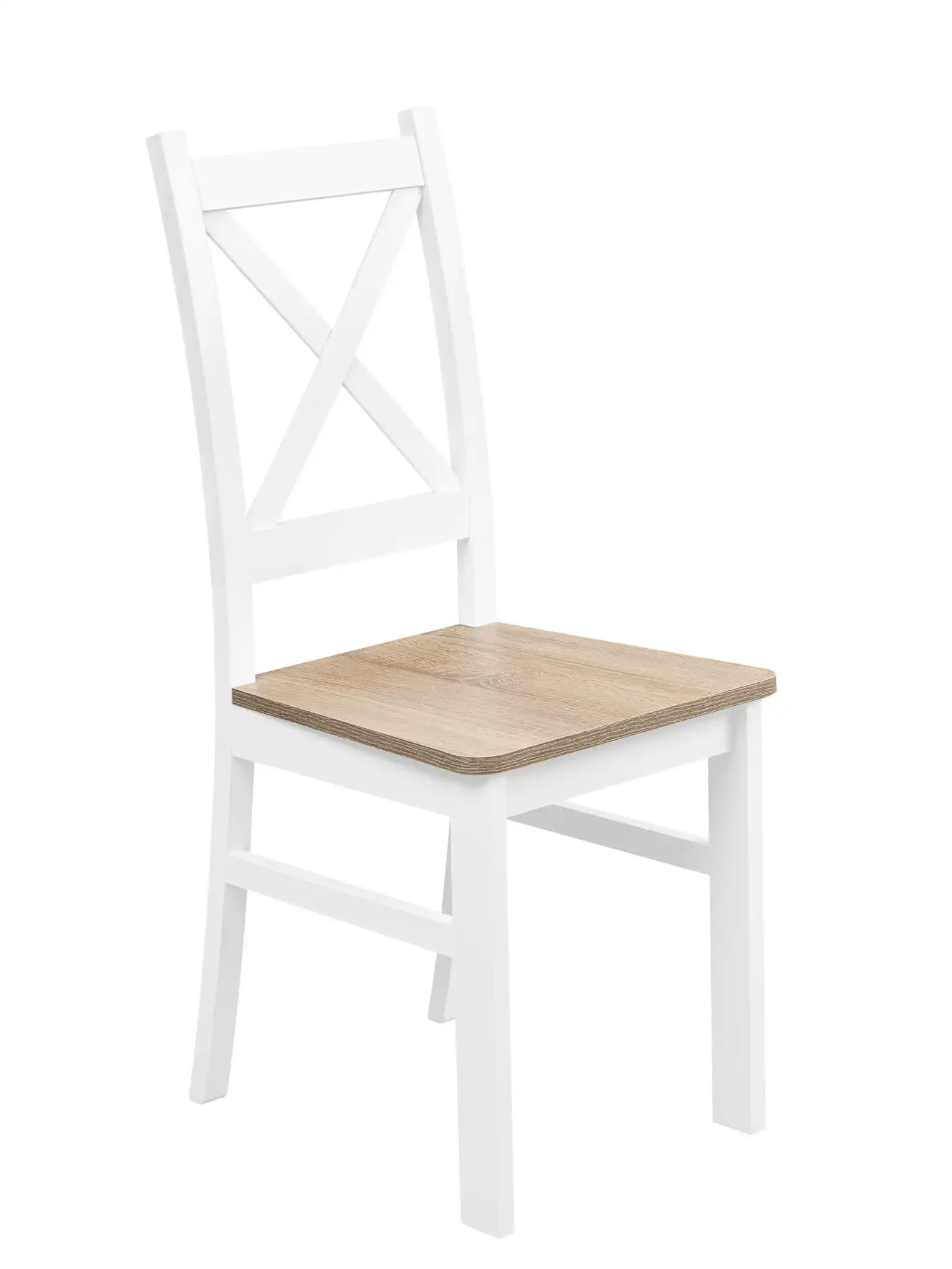 Souprava se vyznačuje klasickým stylem, který nikdy nevyjde z módy. Díky univerzálnímu barevnému provedení se židle dokonale hodí do různých uspořádání, od moderních po tradiční. Dub Sonoma v kombinaci s bílou barvou dodá každému interiéru lehkost a eleganci. Židle se skvěle hodí do kuchyně i jídelny.