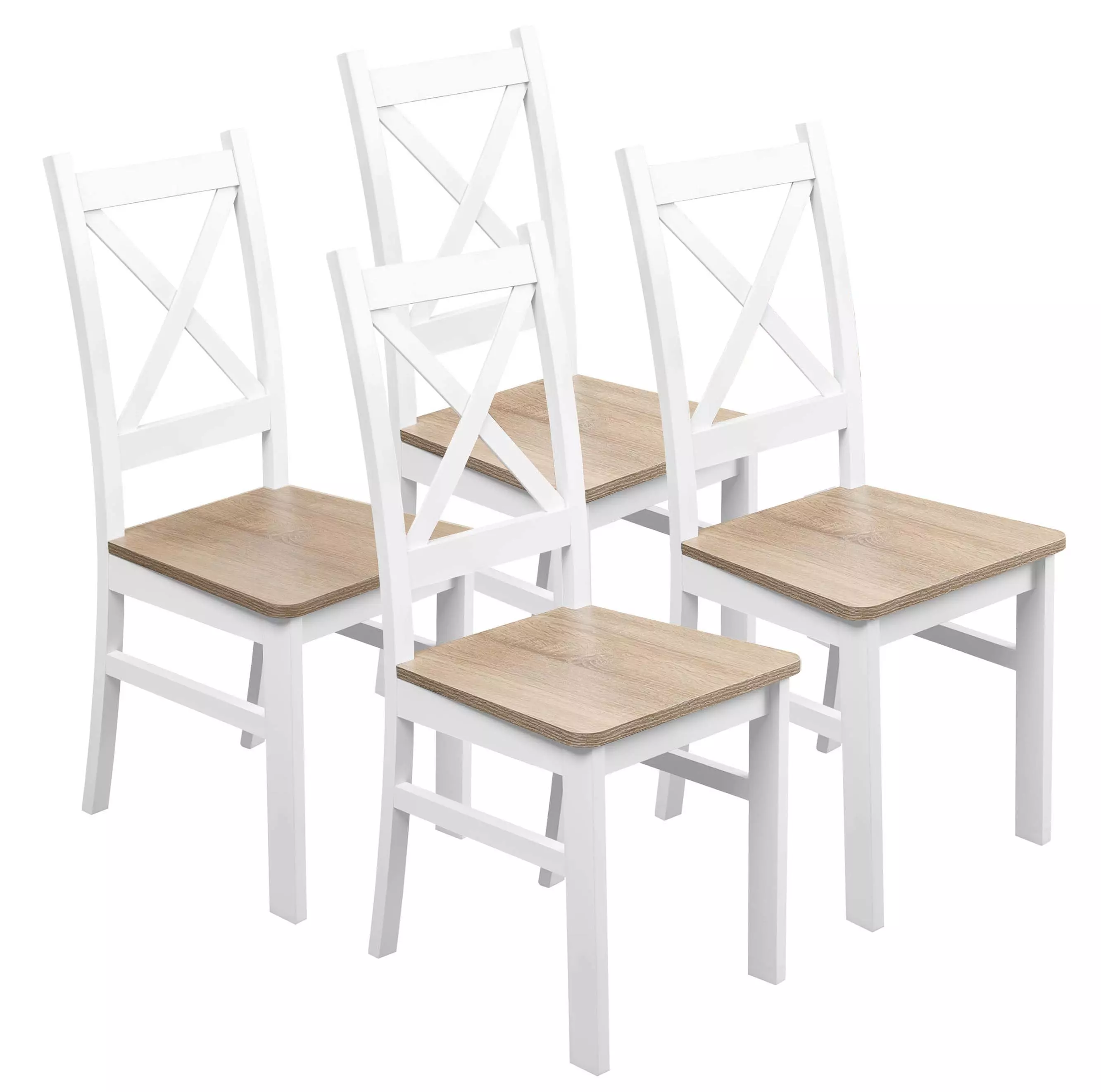 Sada 4x dřevěná židle KRT Bílá/Dub Sonoma
