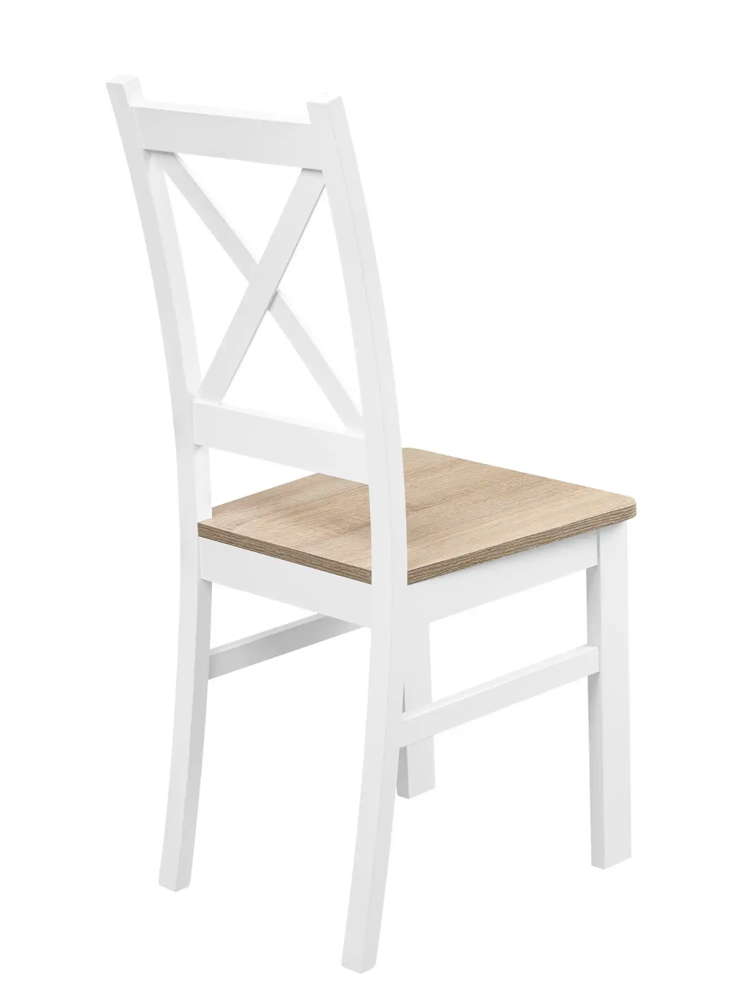 Souprava se vyznačuje klasickým stylem, který nikdy nevyjde z módy. Díky univerzálnímu barevnému provedení se židle dokonale hodí do různých uspořádání, od moderních po tradiční. Dub Sonoma v kombinaci s bílou barvou dodá každému interiéru lehkost a eleganci. Židle se skvěle hodí do kuchyně i jídelny.