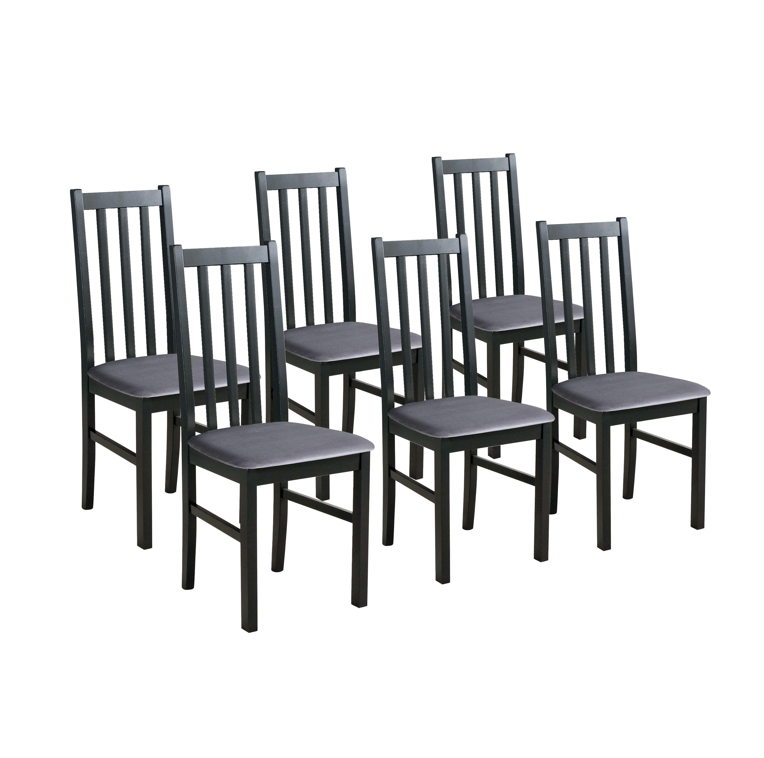 Sada 6x dřevěná židle BOS10 Černá/Šedá