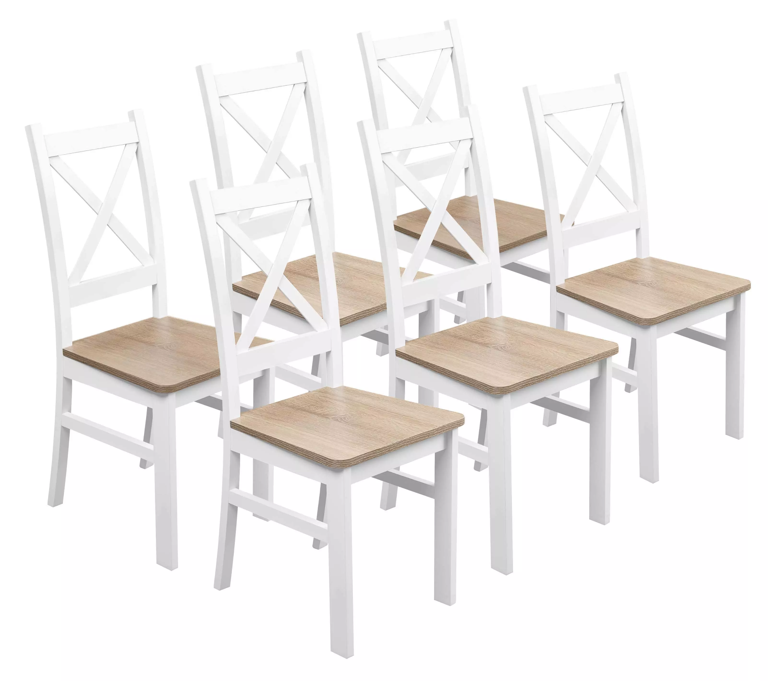 Sada 6x dřevěná židle KRT Bílá/Dub Sonoma